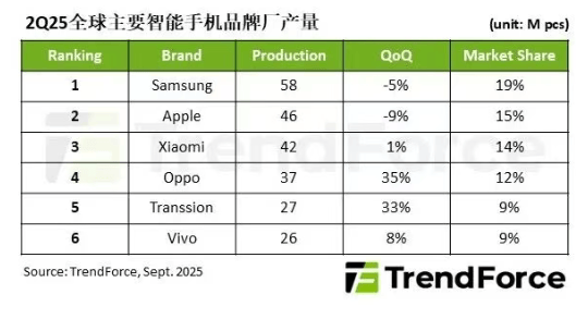 2025年二季度全球手机产量3亿部 三星居首 小米第三 前六大品牌占八成份额-非凡娱乐app