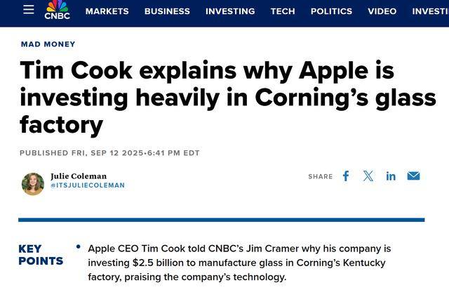 除了新品展示和技术解读,库克还宣布了苹果对康宁工厂的投资计划。他表示,苹果将进一步深化与康宁在消费电子玻璃制造领域的合作,通过技术升级和产能扩展,提升供应链的稳定性和创新能力。这一举措不仅体现了苹果对美国本土制造业的重视,也为其未来产品的研发和生产提供了有力支持。