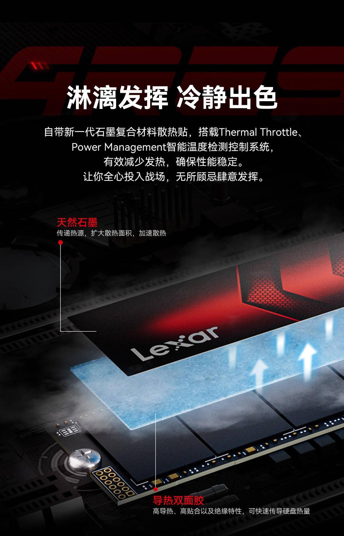 散热方面,ares固态硬盘配备了由天然石墨和导热双面贴组成的复合材料散热层,这一设计旨在有效导出固态硬盘运行时所产生的热量,保障其长时间稳定运行。