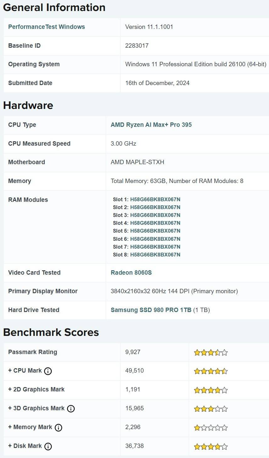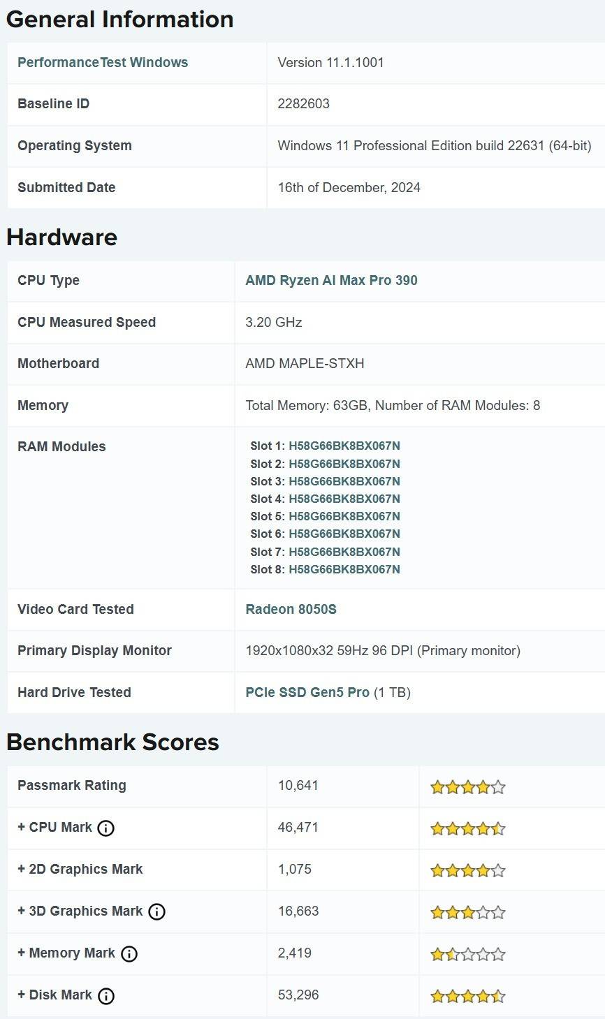出人意料的是,尽管radeon 8060s作为更高配置的集显,但在测试中,其表现并未超过ryzen ai max pro 390所搭载的radeon 8050s。后者在测试中取得了16663分的高分,而前者则仅获得了15965分。这一结果不仅展示了amd新一代集显在rdna 3.5架构下的强大性能,还表明在某些场景下,集显的性能甚至可以媲美一些入门级到中端的独立显卡。